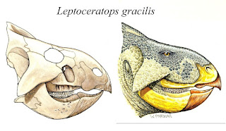 Un cambio notorio es el pico mucho mas grande y marcado que proviene de sus ancestros los Leptoceratopsidos, como Leptoceratops o Udanoceratops los cuales tenian un pico y barbilla dignos de un gigachad.